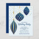 Os pequenos convites de 4,5" x 5,6" apresentam ornamentos azuis-escuros e dourados das árvores de Natal e os detalhes da sua festa de Natal em caracteres chicos sobre um fundo azul-claro. Estes convites para baratos são impressos em estoque de cartonagem de semirbrilho de 110 lb, disponível em 3 tamanhos. **ENVELOPES brancos SÃO OPCIONAIS e podem ser adicionados a seu pedido a um custo adicional. Certifique-se de verificar seu pedido duas vezes antes de adicioná-lo ao seu carrinho, pois o que você vê na tela é o que será impresso. O Serviço de Design ao Vivo pode ajudá-lo com seu layout de design, se necessário. CORRESPONDENDO a itens na nossa loja.