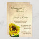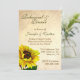 Um convite para jantar o ensaio de casamento com uma aparência muito antiga, com gráficos de um papel velho e uma bonito ilustração de girassol. Texto feito em verde escuro e marrom está pronto para personalizar o seu evento. Belo convite para Primavera, Verão ou Casamento outono.