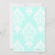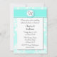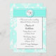 Um convite de janto de ensaio de casamento costume, em aquamarine e branco. Linda camada de fundo aquamarina e damasco branco, com uma camada de texto branca, no meio. Lindos gráficos de um grande aquamarino e fita branca, no topo. Um disco decorativo redondo, no meio da fita, tem um monograma de duas letras para a noiva e as iniciais do noivo. Personalize todo o texto para se adequar às suas necessidades de janto de ensaio.