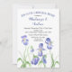 Um belo brunch ou convite jante para ensaio de aquarelas, com flores de primavera, íris roxa, sobre fundo branco.