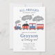 Qualquer convite de aniversário de trem. Personalize as informações editáveis para sua celebração. Perfeito para um tema de trem. Possui um trem vermelho e azul, desenhado manualmente, todo o texto é editável.