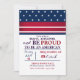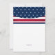 Um convite vermelho, branco e azul com estrelas e faixas. Um convite perfeito para qualquer celebração patriótica. O cartão é fácil de personalizar com seu texto, fonte, cor da fonte e escolha de seis tipos de papel. Não exatamente o que você está procurando? Todos os nossos produtos podem ser personalizados para atender às suas necessidades sem custos adicionais. Basta entrar em contato conosco em askcottonlamb.com Coordenando os produtos disponíveis: