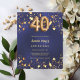 Um convite moderno e na moda para um aniversário de 40 anos. Um fundo azul marinho, decorado com estrelas ouros. A cor azul é irregular. Personalize e adicione seu nome e detalhes da festa. 1 folha = 1 convite impresso de borda a borda.