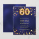 Um convite moderno e na moda para um aniversário de 60 anos. Um fundo azul marinho, decorado com estrelas ouros. A cor azul é irregular. Personalize e adicione seu nome e detalhes da festa. 1 folha = 1 convite impresso de borda a borda.