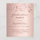 Um cartão de convite glamouroso para uma festa de formatura. Um fundo rosa de gradiente dourado decorado com estrelas. Personalize e adicione um nome e detalhes da parte. O texto Graduação e o nome são escritos com um script de estilo moderno, escrito à mão.