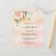 Um fundo de rosa de ouro e gradiente cor-de-rosa pincelado decorado com verde de eucalipto, um rosa de cor-de-ouro e rosa-pincel, folhas de ouro e falsas gotas de relva prateada. Personalize e o nome das garotas e os detalhes da cerimônia.