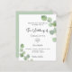 Um fundo branco decorado com cinzas de eucalipto verde. Personalize e seu nome e detalhes da cerimônia. Letras pretas coloridas. Fundo: fundo verde