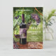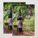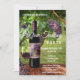 Um convite elegante para uma festa de degustação de vinhos com uma garrafa de vinho, uvas e taça de vinho em um cenário de vinhedo. Bonito para promover um evento de degustação de vinhos ou para uma celebração.