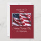 Esta é uma bandeira americana em um fundo vermelho, mostrando a mensagem do convite. Convite perfeito para qualquer Dia dos Veteranos, evento patriótico.