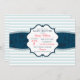 Um convite para temas náuticos com um fundo azul claro e uma faixa branca, um centro azul marinho de corda e um painel decorativo que mantém os detalhes do seu partido. Perfeito para chás, aniversários, etc.<a href='http://www.freepik.com/free-vector/nautical-striped-background-with-several-marine-animals_984466.htm'>Concebida por Freepik (). </a>() O cartão é fácil de personalizar com seu texto, fonte, cor da fonte e escolha de seis tipos de papel.<br/>() Não exatamente o que você está procurando? Todos os nossos produtos podem ser personalizados para atender às suas necessidades sem custos adicionais.<br/>() Basta entrar em contato conosco em askcottonlamb@gmail.com<br/>() Coordenando os produtos disponíveis: