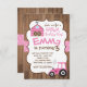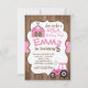 Celebre o convite de aniversário de fazenda da sua garota com este convite de aniversário de Testemunho e Barno Rosa! Polkadots, texturas de madeira, esquema de cores rosa e marrom para um convite fácil de combinar e decorações de festas!