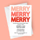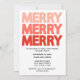 Traga alegria moderna para a sua festa de férias com este convite de festas atraente! O design apresenta a palavra "FELIZ" empilhada três vezes em letras negrito, com todos os bonés que muda de um rosa pincelado mole no topo para um vermelho festivo profundo no fundo, criando um efeito ombré divertido. Comparado a um fundo branco limpo, o estilo mínimo, mas impressionante, facilita a leitura dos detalhes do evento e o convite tanto contemporâneo quanto festivo. Perfeito para festas de Natal, comemorações de feriados ou reuniões familiares, este cartão personalizável permite adicionar seus próprios detalhes de data, hora, local e RSVP. Uma maneira simples e na moda para espalhar alegria de férias!