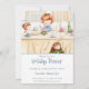 Convidado de feriado bonito e divertido para sua família e amigos. A ilustração representa alguns garotos abrindo presentes após a celebração. Ilustrada e projetada por Patricia Alvarez.
