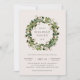Este design apresenta uma coroa botânica verde com acentos de algodão em um fundo neutro.