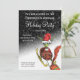 Seja único com seu convite para festas de férias no inverno! Este duende tem olhos grandes e ouvidos pontiagudos, vestindo Papais noeis de chapéu e roupa, montando um solteiro de elfo de madeira em duas lâminas puxadas por um animal com uma cauda longa. Perfeito para festas de Natal, férias ou época de inverno de todos os tipos. Totalmente personalizável! A frente tem um combo preto/vermelho e a parte de trás. O duende está de ambos os lados.