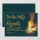 Modelo de convite de festa de fogueira no quintal. Um design de fogo ardente com fundo azul escuro e texto laranja-amarelo. O título da festa e o nome / local são em letras grandes. Este convite horizontal é perfeito para uma reunião casual com amigos ou para celebrar um aniversário.