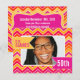 Chevron zigzag cor-de-rosa forte brilhante, cor de laranja, branca, vermelha e amarela do 50.o convite de aniversário. Convidado gráfico brilhante personalize com sua própria idade de aniversário, detalhes da festa e fotos da sua aniversariante. Design exclusivo de Sarah Trett.