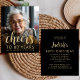 A frente deste convite de 80 de aniversário apresenta a foto do convidado de honra com uma camada de texto dourada. A palavra "torcida" aparece num elegante roteiro de caligrafia dourada, seguido de "até 80 anos" e o nome e aniversário do convidado de honra em sans serif font. Uma tela escura ajuda a tornar o texto pop. Personalize o lado inverso com o nome e os detalhes da parte em um plano de fundo preto. Uma forma excelente de celebrar alguém que está fazendo oitenta anos! (NOTA: Os envelopes não são incluídos automaticamente com este convite orçamental. Para adicionar envelopes ao seu pedido, use o menu suspenso "Envelopes".)