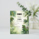 Um convite para comemorar o aniversário de um menino. Uma selva, a floresta tropical e dois dinossauros, Tyrannosaurus. Personalize e adicione um nome e detalhes da parte. 1 folha = 1 convite impresso de borda a borda.