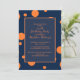 Convite de aniversário de bolinhas azul laranja e marinho.