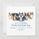 Esfregando caudas para nossos quatro amigos. Celebre o seu pequeno e vire um com este filhote inspirado no convite de aniversário. Estes filhotes adoráveis; um Bernese, corgi, buldogue francês, rouco e pantanal que sai para uma aventura, são uma captura de excelente para qualquer amante de cães ou dono de cães. É um convite perfeito para seus amigos e família em qualquer ocasião. Trate-se ao estilo do filhote, adicione este design à sua coleção. COPYRIGHT © 2023 Pauwels Design, Dog Art - Todos os Direitos Reservados.