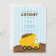Primeiro convite de aniversário para um caminhão de lixo amarelo bonito e divertido Comece seu evento com nosso convite de aniversário de lixo amarelo giro em um fundo listrado azul. Trendy caminhão temático O convite é perfeito para a festa de aniversário do seu filho! Apenas personalize com suas informações e você está pronto para ir! Itens correspondentes, incluindo chás de fraldas postais, adesivos de favoritos, cartões de agradecimento e obrigado que você também está disponível em nosso compro. ©BabyStar Design