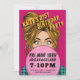 Pop arte estilizada garota soprando pastilha elástica retro convite design.