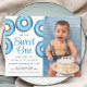 Convide a família e os amigos para a primeira festa de aniversário do seu bebê com este belo convite para primeiros aniversarios. É decorado com rosquinhas de aquarela azuis e diz "Ele é um doce" Facilmente personalizável com sua foto e detalhes. Original Watercolor © Michele Davies.