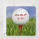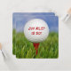 Feche a bola branca de golfe no campo vermelho na grama para qualquer ano de aniversário e nome personalizado