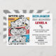 Convite de aniversário de Jogador de Nível Superior de Jogo de Vídeo. Clique no botão "Personalizar este modelo" e "Personalizá-lo" para obter mais personalização deste modelo. Você poderá modificar todo o texto, inclusive o estilo, as cores e os tamanhos.
