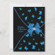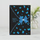 Convite de aniversário de uma borboleta azul-azul-azul-azul-esbranquiçada, com um jato azul-lacrimogêneo preto e arco do centro de diamante. Personalize a frente com o nome do seu filho e o ano de aniversário. Você pode alterar o tipo de fonte e a cor da fonte e a cor do plano de fundo para sua preferência.
