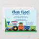 O convite para festas de aniversário deste garoto, 5 horas por dia, 7 dias por semana, tem um tema de trem. Há um trem puxando três carros para trás, com um ursinho num. Você pode adicionar sua própria fotografia na frente! As informações de festa de aniversário estão localizadas no centro e são facilmente personalizáveis. Copyright © Designs Zenware