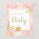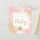 Um alternativo de 4,5 pol x 5,6 pol com preço inferior. Disponível em um STOCK DE CARTÃO SEMI-GLOSS 110 lb, que é a opção padrão (mais espesso para convites), OU um STOCK de PAPEL THINNER FINISH 80 lb FINISH (ideal para gabinetes). Os envelopes são um extra opcional e são ligeiramente maiores que o tamanho da placa. Festa de aniversário Dourada rosa com aquarela. Convite de aniversário elegante e feminino com borda cor-de-água rosa com confete dourado, folhas e flores, circundando texto facilmente personalizado e todos os detalhes no sentido inverso.