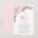 Honra uma mulher especial com este Convite de aniversário elegante e feminina. 90 é escrito em texto rosa grande. A comemoração de aniversário segue. O nome do convidado também está em letras cor-de-rosa. As rosas cor-de-rosa pinceladas e as folhas verdes salgadas criam um belo spray floral no topo. Enquanto é um design tradicional, a folhagem botânica aberta e arejada e o texto lhe dão uma vibração contemporânea. O convite de volta é um rosa macio mal-ali. Infelizmente, os 90 algarismos não são editáveis. Se precisares de mais um ano, terei todo o prazer em fazer um design personalizado para ti.