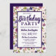 Festa de aniversário Floral Pêssego Púrpura Colorida Convite Adequado para ambos os sexos