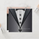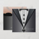 Elegante convite de smoking preto com camisa branca e gravata borboleta preta na frente e um vestido de gala sem alças preto com colar de diamantes no verso. Este é um modelo de convite de festa ou evento versátil para qualquer festa ou ocasião especial. O design da frente e verso também está disponível em envelopes.