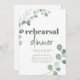 Se você ama clássico, este convite simples e acolhedor é certo para você. O convite apresenta um design elegante, de fundo branco, com detalhes delicados do partido, belamente escritos em um texto verde, exuando um ar de sofisticação. Verduras suaves moldam a borda. Bem-vindos convidados ao seu janto de ensaio em estilo. A cor e o texto em segundo plano são editáveis.