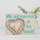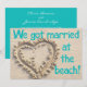 Casou-se na praia? Convite para festa de casamento com coração desenhado na areia e "nos casamos na praia". Seu texto personalizado no verso - edite todos os campos de texto. Se você fugiu ou teve um casamento de destino e está enviando um anúncio de fuga ou terá a festa de casamento posteriormente, personalize este convite para o seu evento.