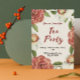 Convite para Festa de Chá com Flores Vermelhas, Verdes e Brancas.
