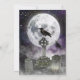 O design apresenta uma lua cheia e um corvo sentado sobre lápides de cemitério. Sobreposição com visual de véu preto para destacar o texto com menu. O verso tem uma imagem repetida. Todo o texto é totalmente editável, basta clicar em "Personalizar texto".