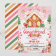 Convide seus amigos e familiares para uma festa aconchegante e festiva de decoração de Casa de Biscoito de gengibre! Este convite de férias adorável apresenta uma doce casa de biscoito de gengibre cercada por bastões de doces, flocos de neve e decorações de Natal pastéis. Perfeito para crianças ou reuniões de férias em família.