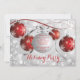 Ornamentos vermelhos modernos com flocos de neve e convite para o festival de inverno Trendy Silver Bokeh. Sacudir nosso convite elegante para ver uma correspondência de volta para um toque extra especial. Na moda e convite de festas de Natal ou festa de escritório festivo, festa da empresa, festa formal de coquetel, janto ou qualquer inverno se juntam.