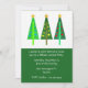 convite de festas de Natal, com trabalho de arte artesanato de três árvores de Natal verdes, sobre um fundo branco, no topo. A parte inferior do convite é feita em verde, com texto branco personalizado pronto para personalizar a sua festa de férias.