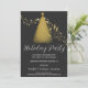 Convite à festa de Natal Dourado e festivo, que pode ser personalizado.