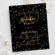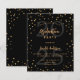 Um cartão de convite glamouroso para uma festa de formatura para ele e para ela. Um fundo preto decorado com estrelas douradas falsas. Personalize e adicione um nome, ano e detalhes da festa. O texto Graduação e o nome são escritos com um script de estilo moderno, escrito à mão. Texto colorido do ouro. Fundo: fundo preto e estrelas ouros. 1 folha = 1 convite impresso de borda a borda.