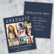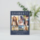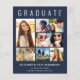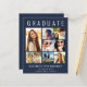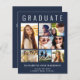 Anúncio moderno e elegante de graduação em azul escuro, amigável em orçamento, e convite de festas com "FORMANDO" no topo em letras brancas grandes, uma colagem de sete fotos e seu nome, ano de aula e escola em uma simples tipografia branca. Na parte traseira, adicione os detalhes da parte do formando.