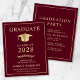 Anúncio e convite de festas elegante e econômico do formandos vermelho burgundy, com boné de formatura de ouro e simples tipografia de ouro leve moderna para o nome do formando, ano de aula, faculdade ou universidade, grau e grande ou honras.