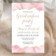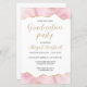 Este convite de festa de formatura de tendência apresenta uma borda superior e inferior do geode de agate de cor d'água em tons de rosa com realces falsos de brilho dourado. As palavras "Festa de formatura" aparecem na letra decorativa de escrita manual dourada moderna. Personalize o convite com o nome do formando em ouro, juntamente com a escola, o ano de aula e os detalhes da festa em cinzas de carvão em fundo branco. A parte traseira da placa é branca estável.
