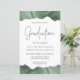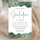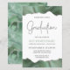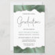 Este convite de festa de formatura de tendência apresenta uma borda superior e inferior de geode de agata de cor d'água em tons de verde de sábio com realces falsos de brilho prateado. A palavra "Graduação" aparece na falso cintilação prateada em letra decorativa moderna de escrita manual. Personalize o convite com o nome do formando em texto verde sábio e os detalhes da parte em cinzas de carvão em fundo branco. Uma imagem verde-sábio e agata prateada correspondentes aparece no lado oposto.