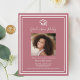 Um fundo rosa dourado, decorado com uma armação branca e um boné de formatura. Personalize e adicione um nome de foto e detalhes. Texto branco. 1 folha = 1 convite impresso de borda a borda